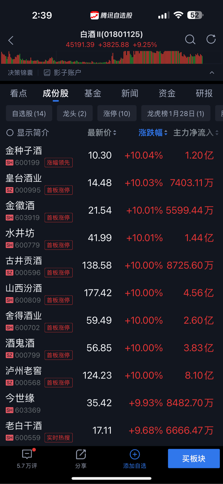 白酒都涨停潮了,茅台都快涨停了,证券一个涨停的没有↔..........