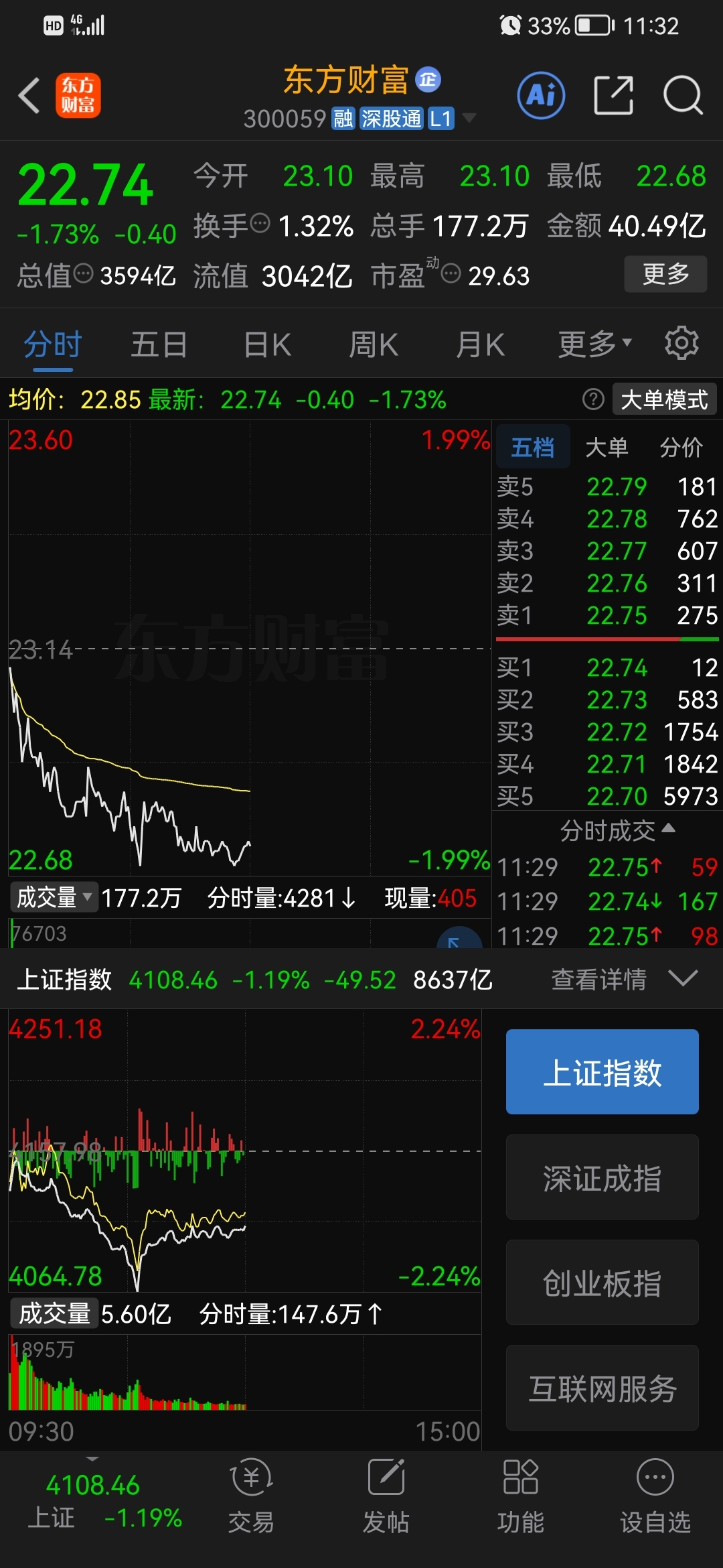 $东方财富(SZ300059)$ 大盘下去它跟着,大盘企稳它躺平,sao bi