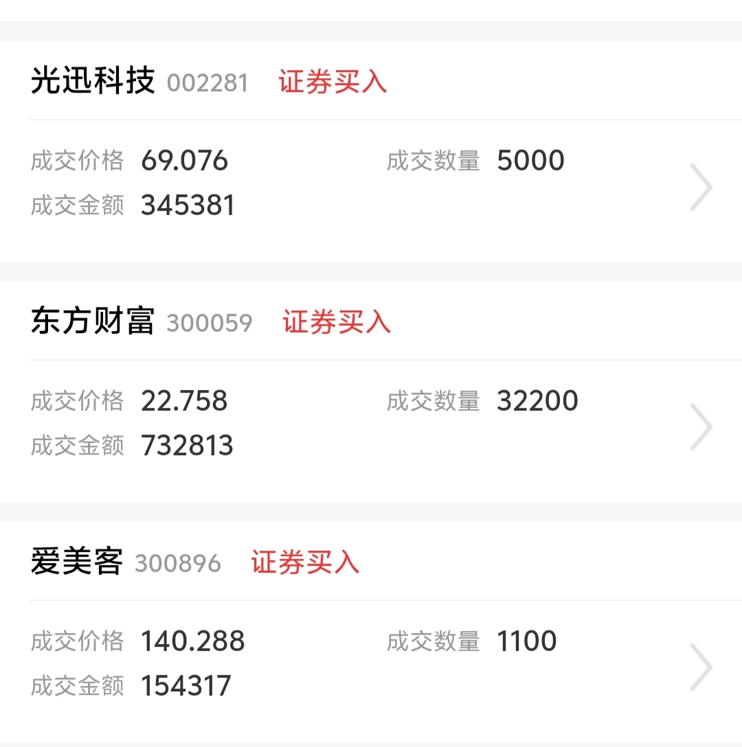 今天继续吃货东财、光迅和爱美客。