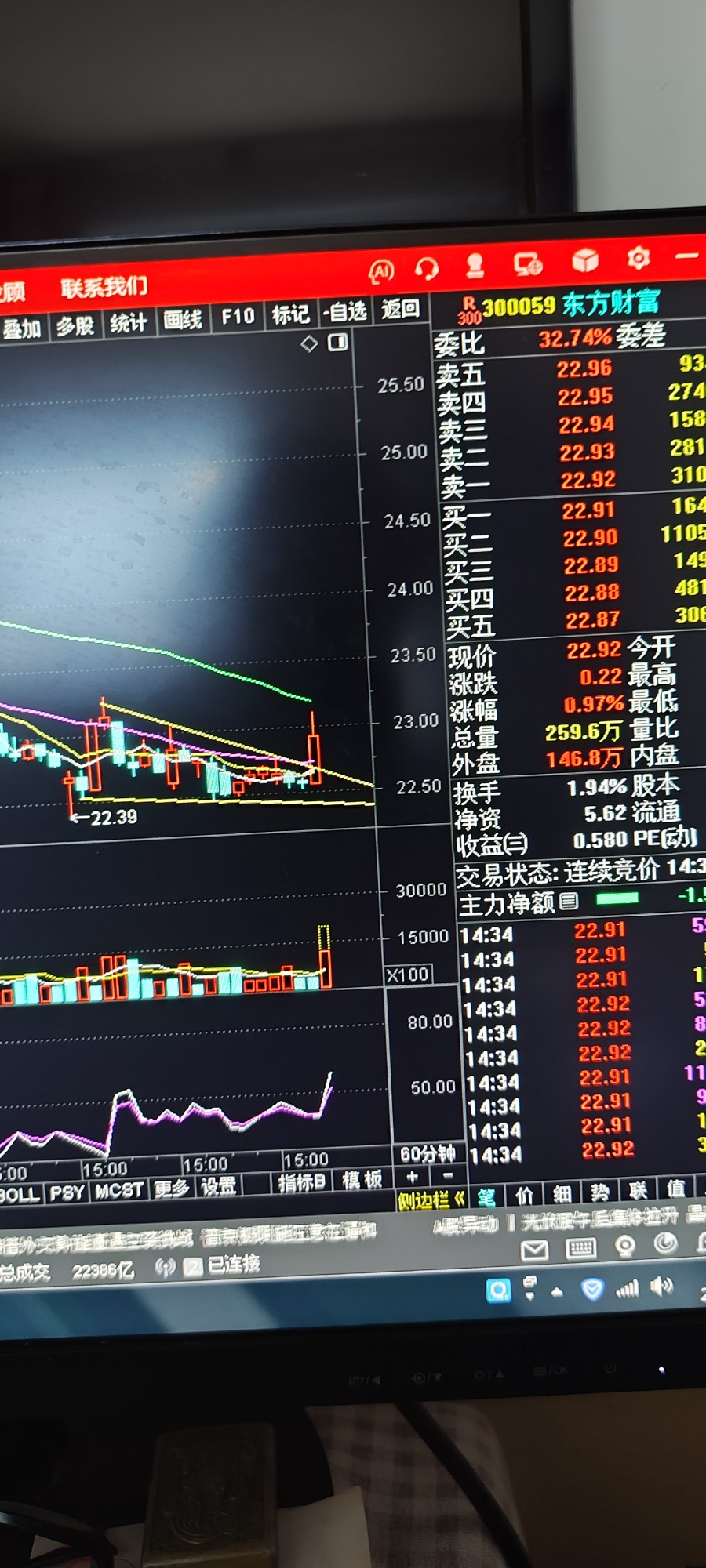 $东方财富(SZ300059)$ 60分钟K线突破下降三角形
