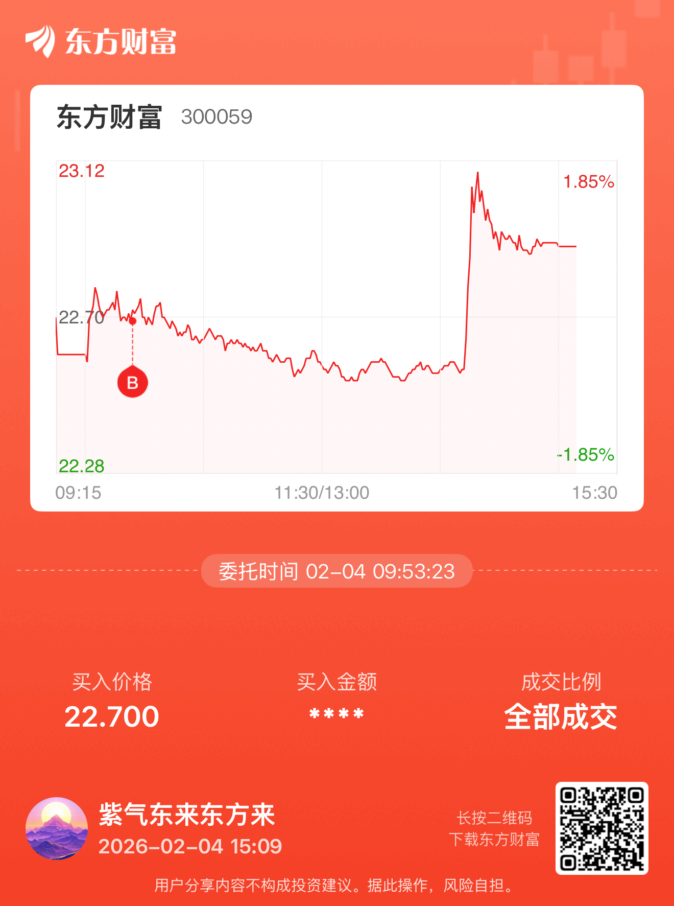 温馨提示: 1.根据《证券法》规定,禁止编造、传播虚假信息或者误导性信息,扰乱证券市场;2.用户在本社区发表的所有资料、言论等仅代表个人观点,与本网站立场无关,不对您构成任何投资建议。用户应基于自己的独立判断,自行决定证券投资并承担相应风险。《东方财富社区管理规定》
