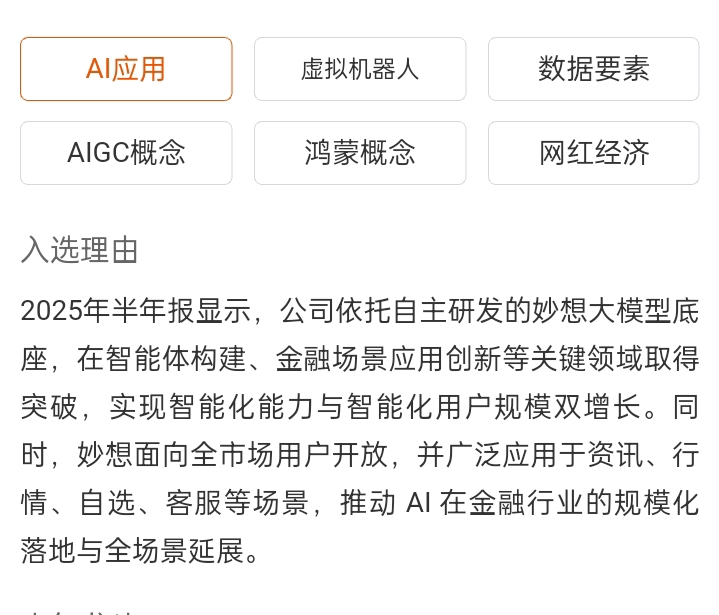 A股有自己AI大模型底座的公司有几个?豆包 、文心一言、 千问 、 DeepSeek 、腾讯的混元,都不在A股,妙想 自研AI底座+智能体+金融行业应用场景+百万潜在付费用户, 这是真正的AI公司,当券商来看是低估了她。