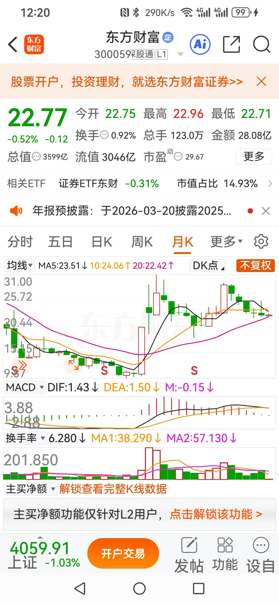 $东方财富(SZ300059)$ 20月均线应该有强支撑吧,年报业绩也挺好的,预报之日就是拉升之时,有可能跳空高开高走