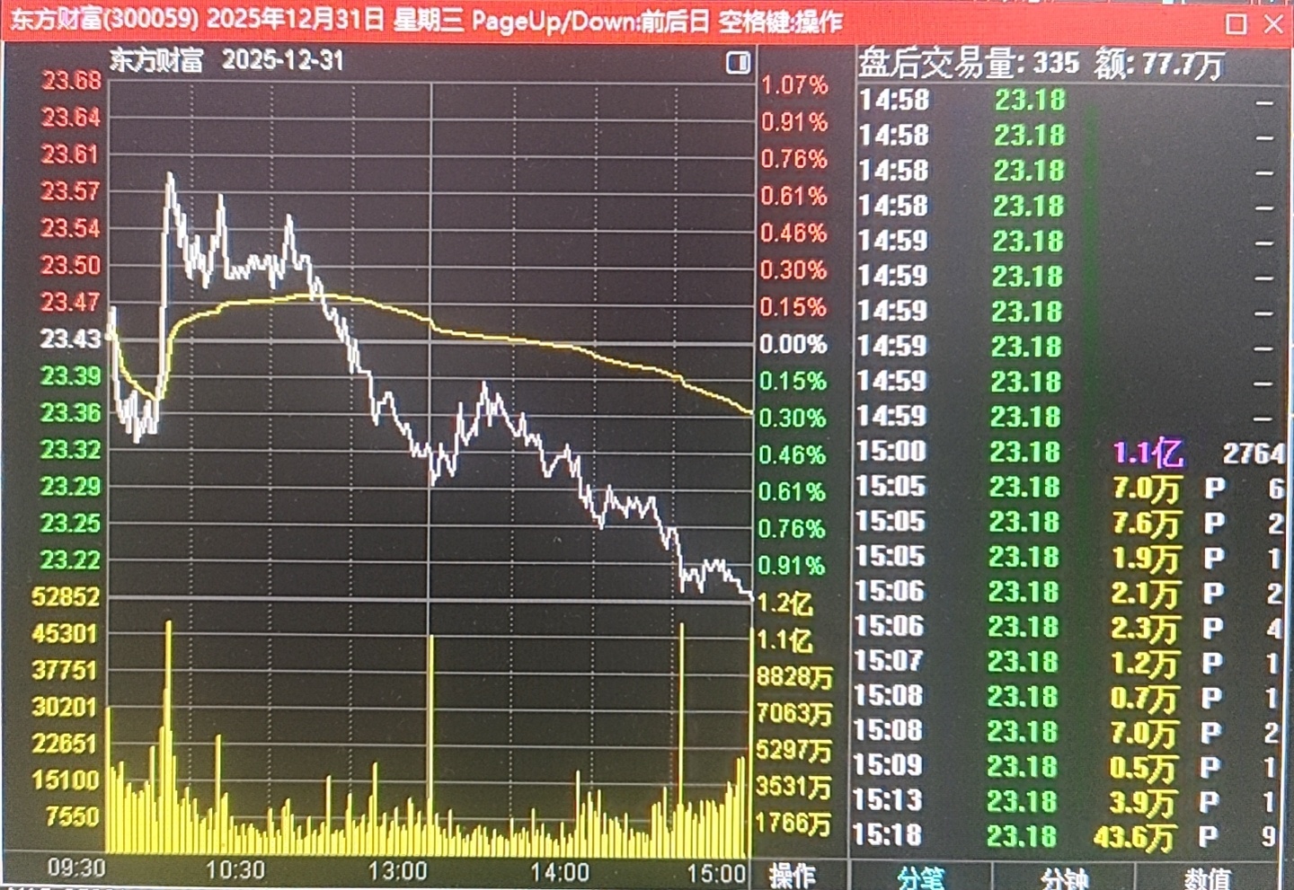 去年12月31日东财的分时图走势,同今天大抵相似,主力的做盘意图也尽在其中,那么下周走势可以借鉴元旦后日K走势!历史不会简单重复,但人性始终千年末变!