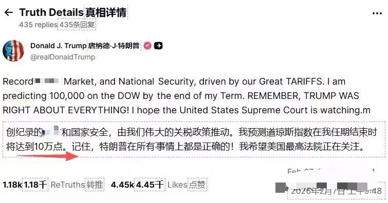 最新!特朗普宣称其任期结束后道琼斯指数能到十万点