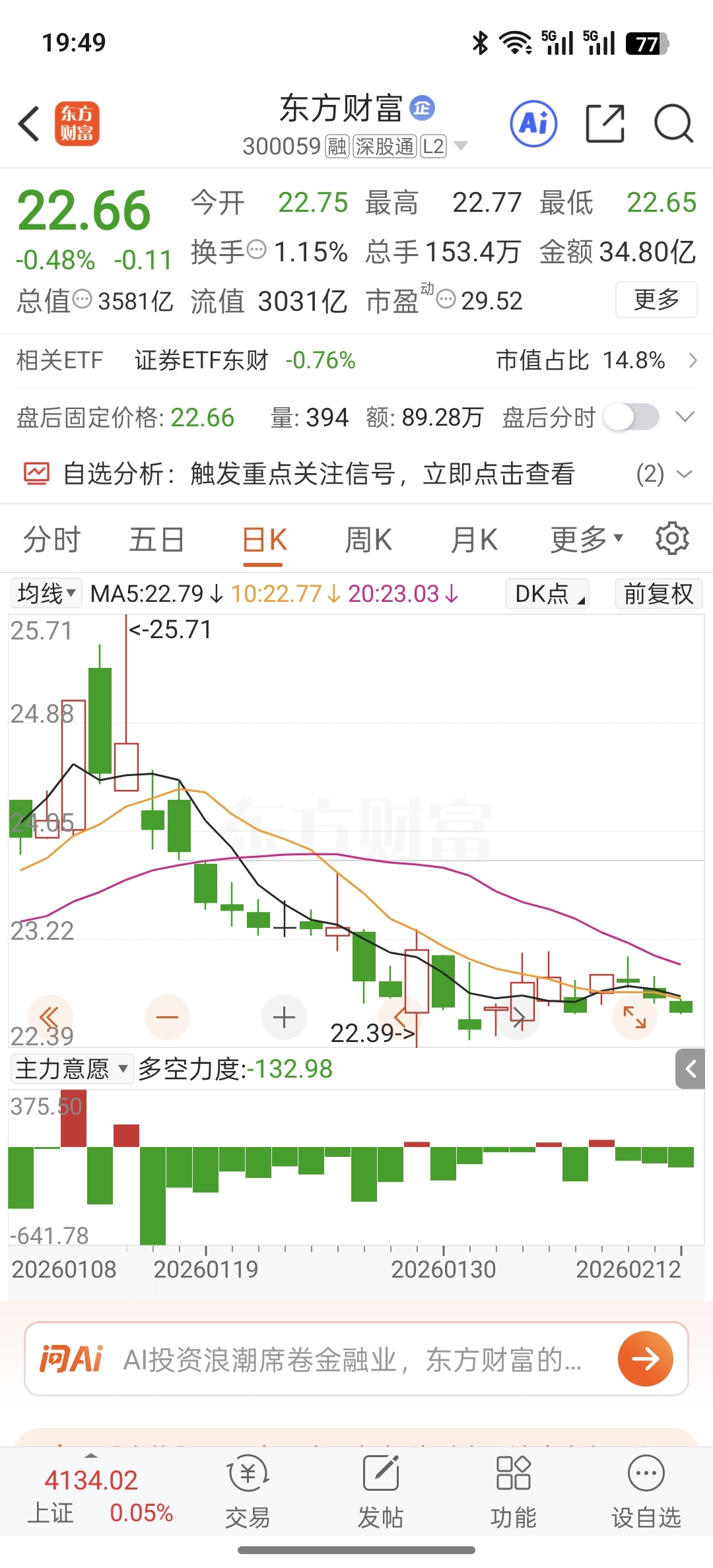 $东方财富(SZ300059)$ 还有敢买的一波比一波低还有新低。超级卖单每天卖不完。不能买。
