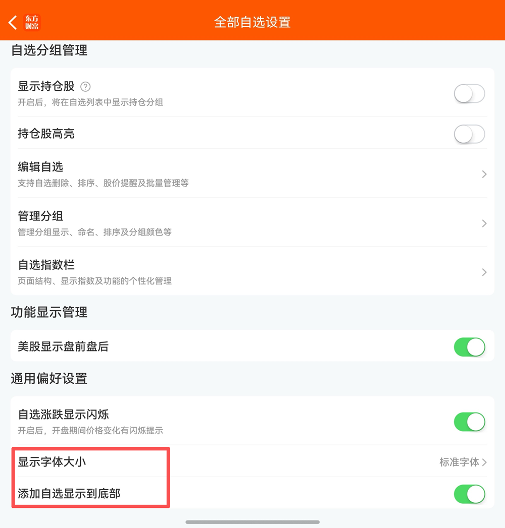 展示美股盘前盘后行情:投资者可在“自选-全部自选设置”中开启“显示盘前盘后”,轻松掌握非交易时段动向。