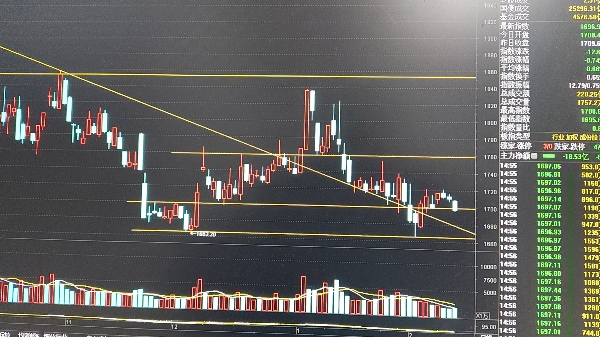 证券板块连续两天地量后今日收盘微微放量跌破1700点支撑,这比前两天多出来的量哪来的?尾盘砸破支撑,有割肉盘出来了!这个大双底就比较坚固了!