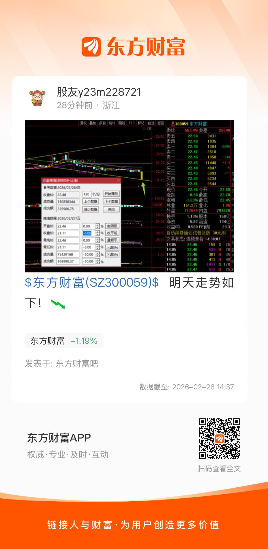 温馨提示: 1.根据《证券法》规定,禁止编造、传播虚假信息或者误导性信息,扰乱证券市场;2.用户在本社区发表的所有资料、言论等仅代表个人观点,与本网站立场无关,不对您构成任何投资建议。用户应基于自己的独立判断,自行决定证券投资并承担相应风险。《东方财富社区管理规定》