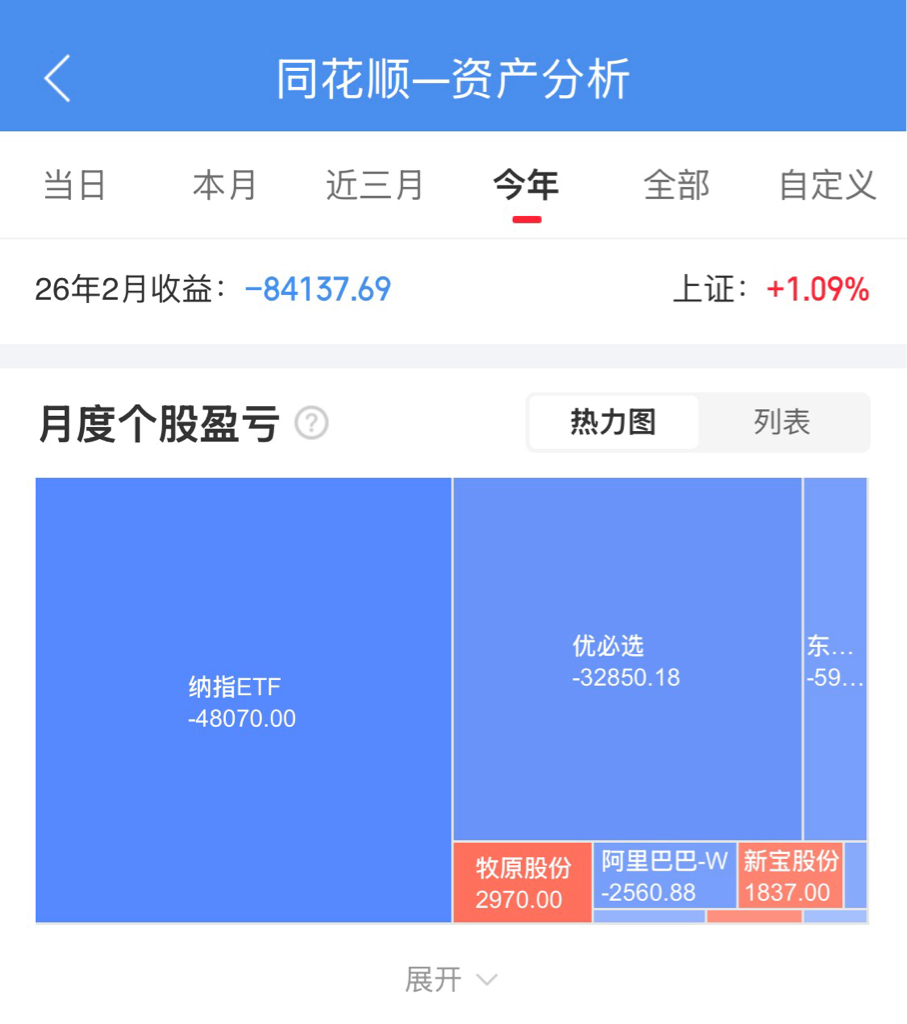 $东方财富(SZ300059)$ 本月行情轮动较快没有怎么操作,业绩空窗期柚子比较活跃,节奏把握难度大。2026年是要放低预期的一年,近期美股、特别是港股情绪杀其实反而是个值得关注的机会,A股最近开仓几只票表现都不乐观,这种行情最好的处理方式就是静下心来慢慢做。手里几只相对业绩确定性的票目前都没有什么表现,静待花开。等待财报。
