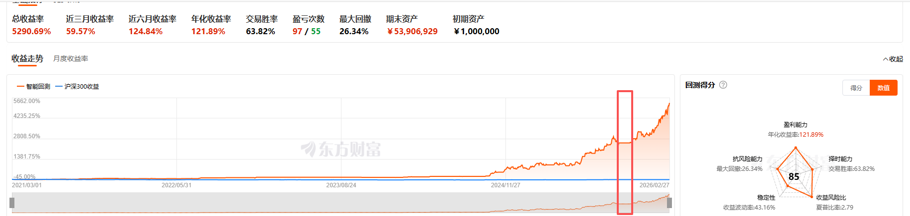 这个策略我看了一下记录, 是2025年9月30日至11月3日,也就是将近1个月没有选出股票,当然那个时间段也刚好是 10月8日大跌,所以若真正按策略执行,我不知道我能否忍住自己的手
