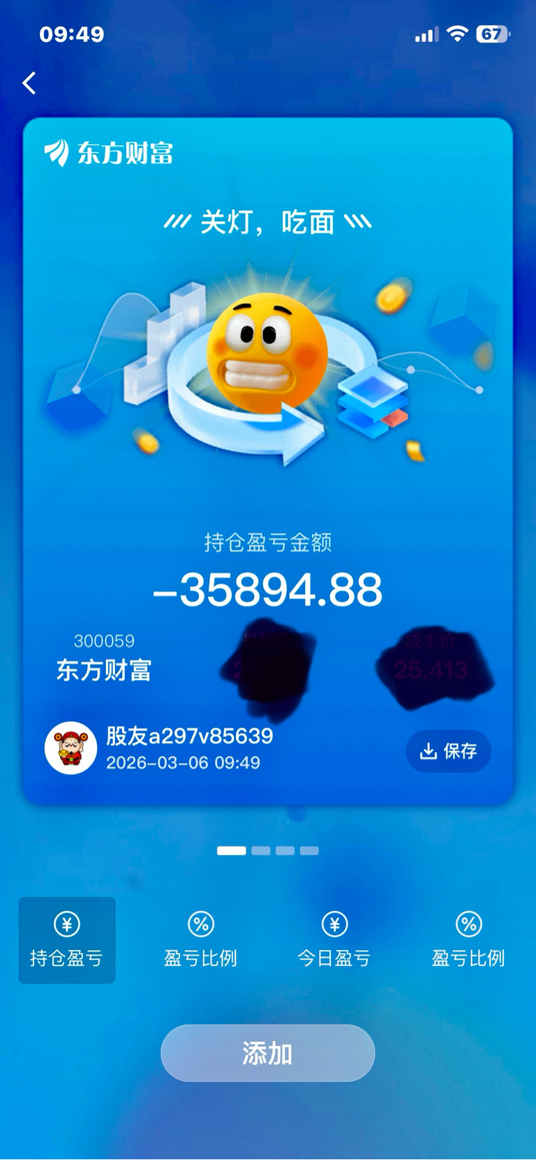 $东方财富(SZ300059)$ 几个月了天天高开低走,再不拉面都吃不起了。