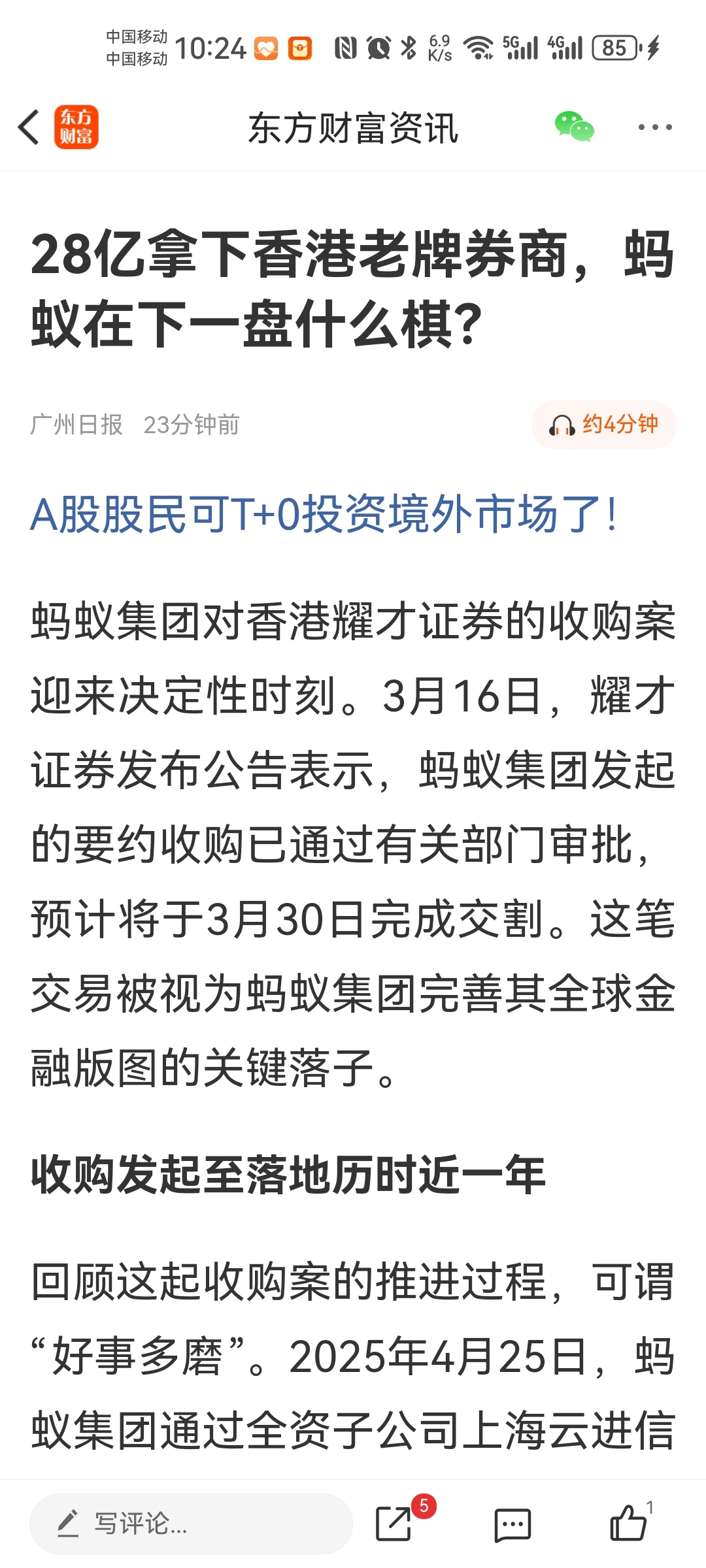 $东方财富(SZ300059)$ 蚂蚁入局证券,又给证券业带来了想象空间,尤其是互联网券商这一块。大家都知道阿里是最会玩新花样的,这下有好戏看了。