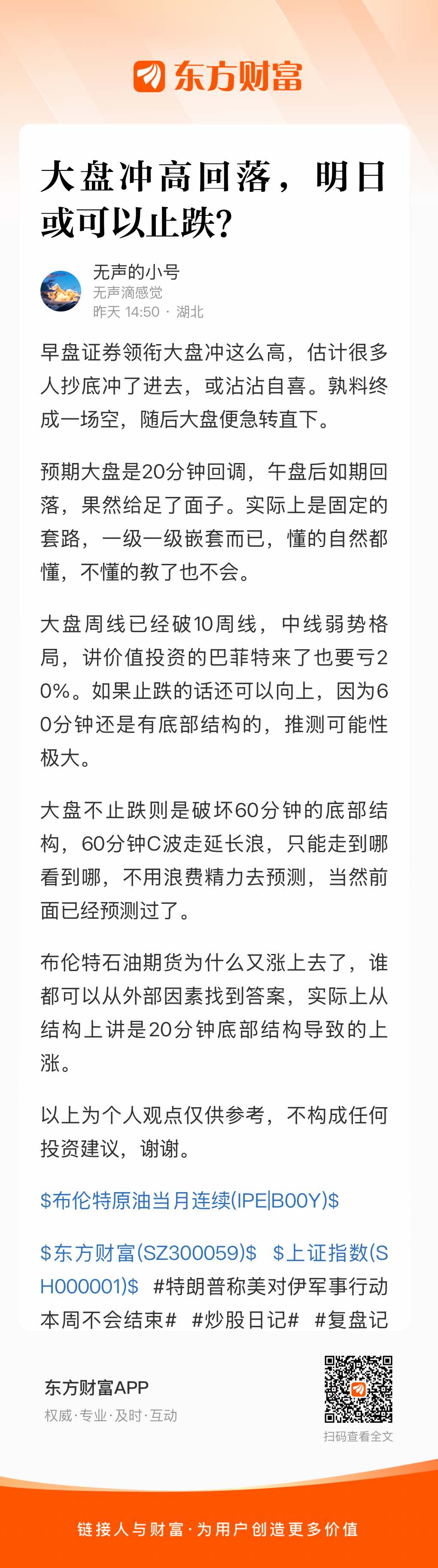 $东方财富(SZ300059)$ $上证指数(SH000001)$ #特朗普称美对伊军事行动本周不会结束# #炒股日记# #复盘记录# #强势机会# #股市怎么看#