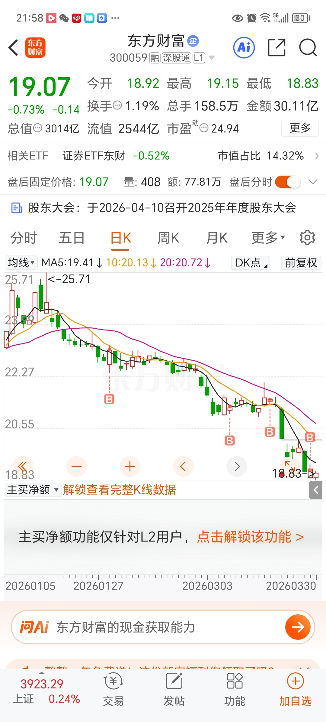 $东方财富(SZ300059)$ 还能继续跌吗?