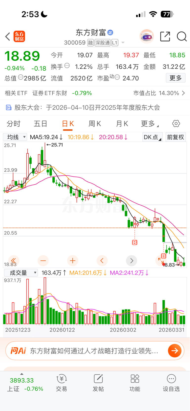 $东方财富(SZ300059)$ 太难了