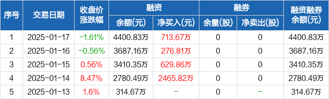 旗天科技:融资净买入713.67万元,融资余额4400.83万元(01-17)