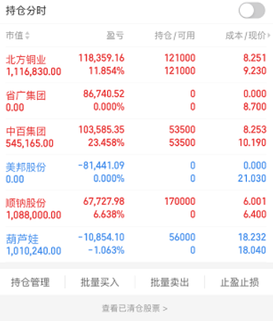 $中百集团(SZ000759)$中百集团000759:他今日继续分时承接的状态,那就继续看看明日吧,行情弱势,超跌方向还有望表现,他是超跌的老龙。中百集团,是老猿上周二早上挖掘的,当时市场刚刚转折,并且他出现了止跌讯号,可以说挖掘是很及时的。另外,当时的思考是,行情回暖老龙一般都会有反抽。果然后面如期验证,上周二潜伏后,周四就如期暴发涨停。上周四板上不贪减半了,剩下的还在跟踪看看。