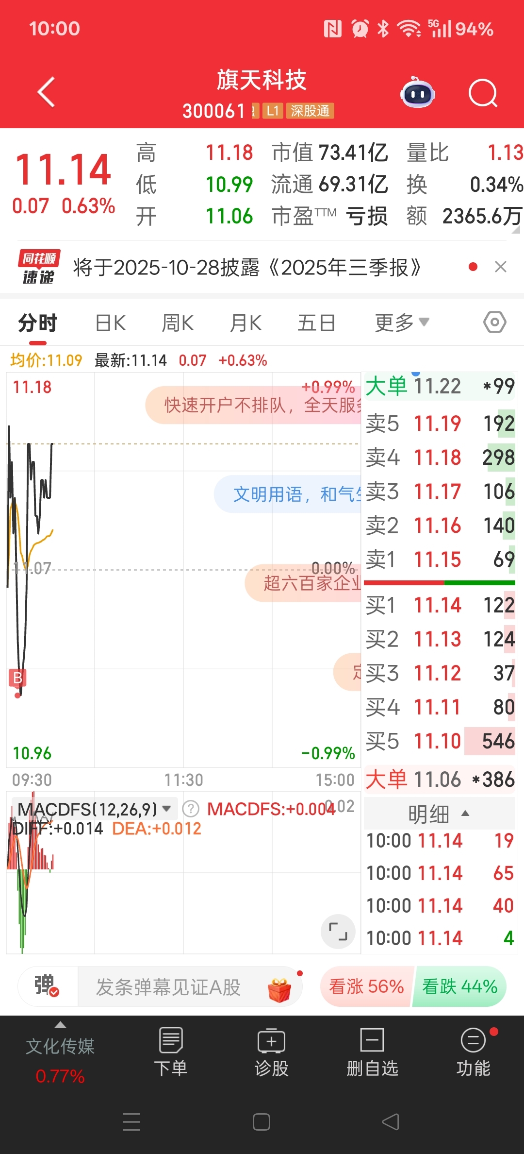 $旗天科技(SZ300061)$ 爱咋咋地,反正我来了