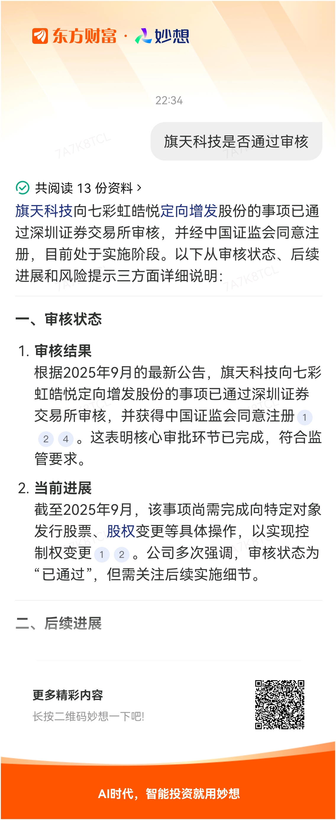 #@妙想,你怎么看?# 妙想一下:旗天科技是否通过审核