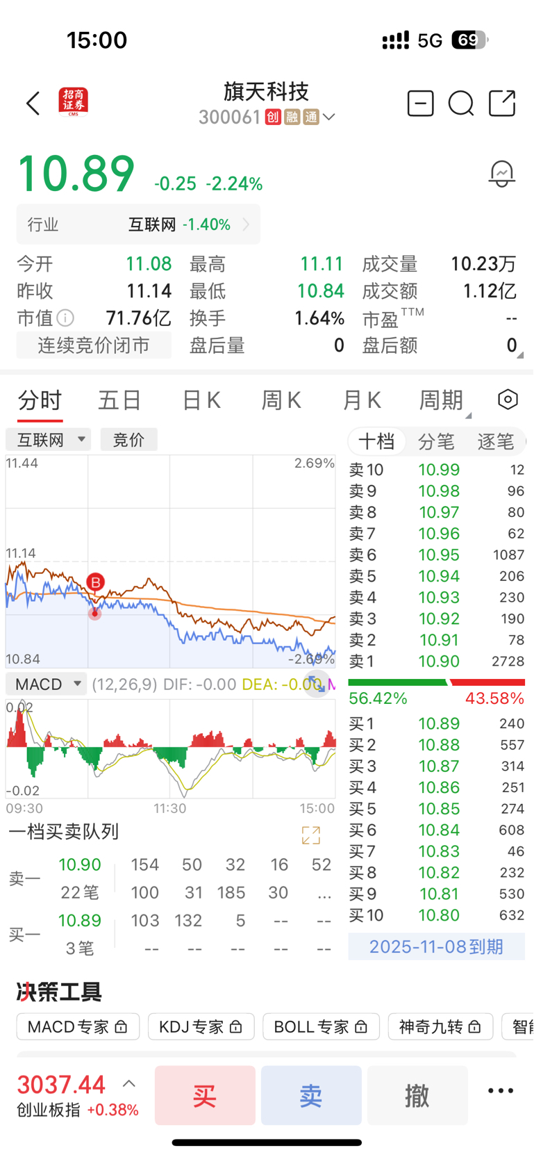 $旗天科技(SZ300061)$ 抄底11块买的,炒到半山腰,妈的