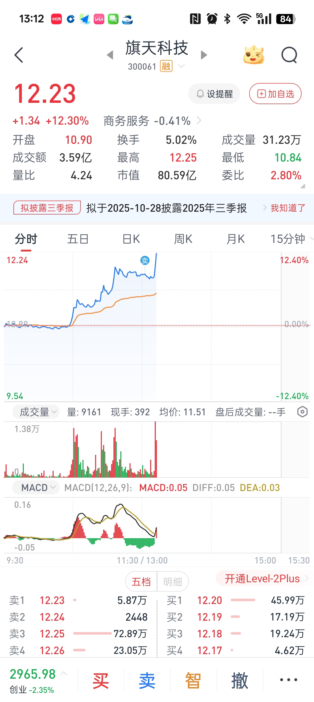 $旗天科技(SZ300061)$ 我丢。坑爹。。。