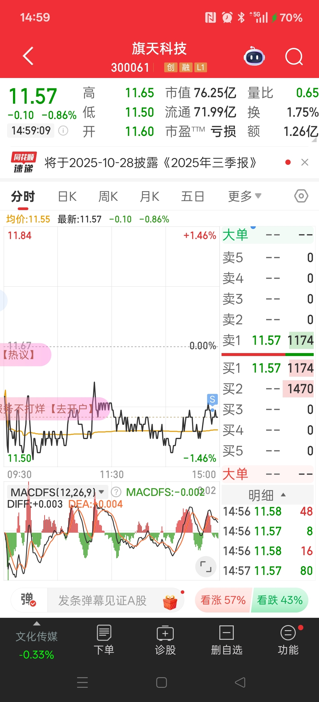 $旗天科技(SZ300061)$ 我卖了,你可以冲了