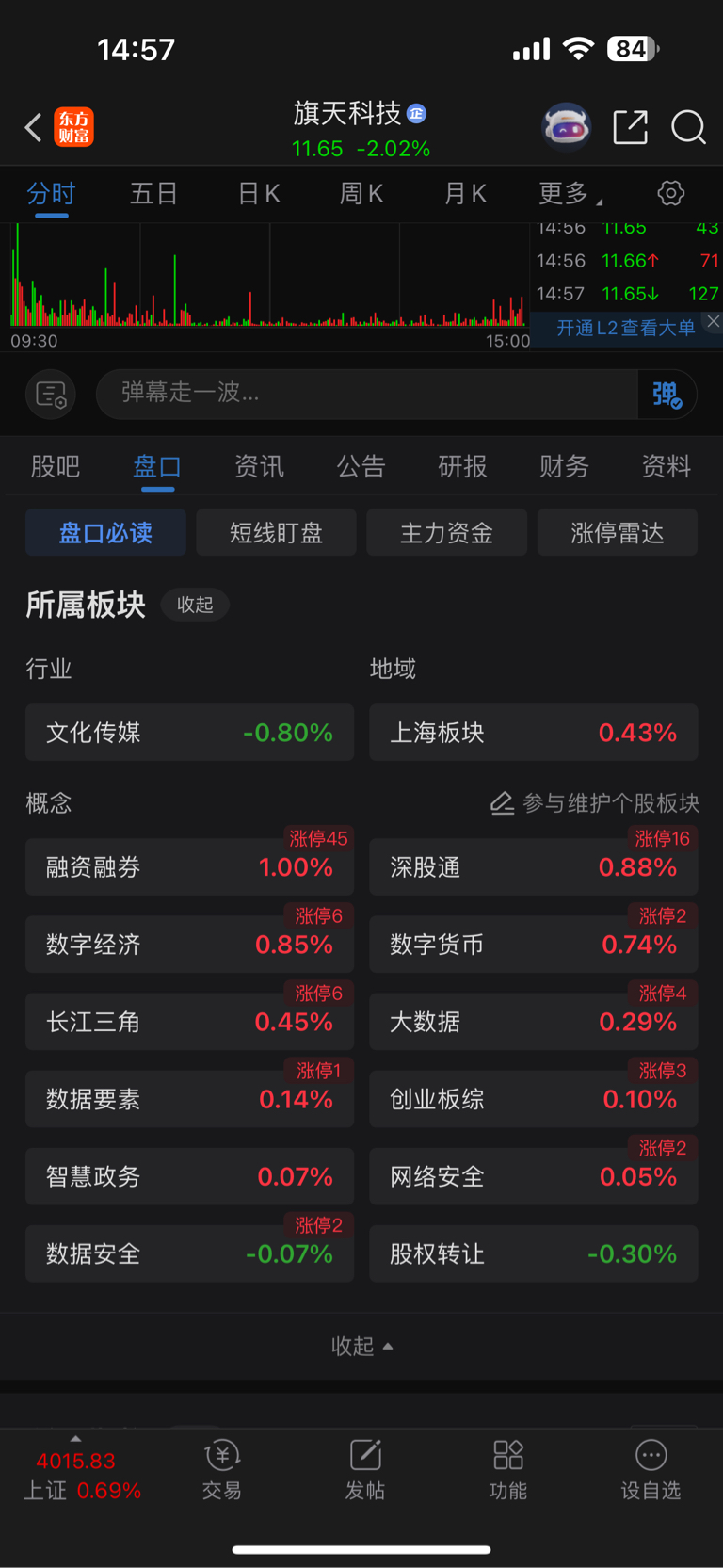 $旗天科技(SZ300061)$ 这行情,够独立!