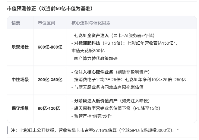 七彩虹如果收购旗天科技成功,旗天科技市值可能性预测