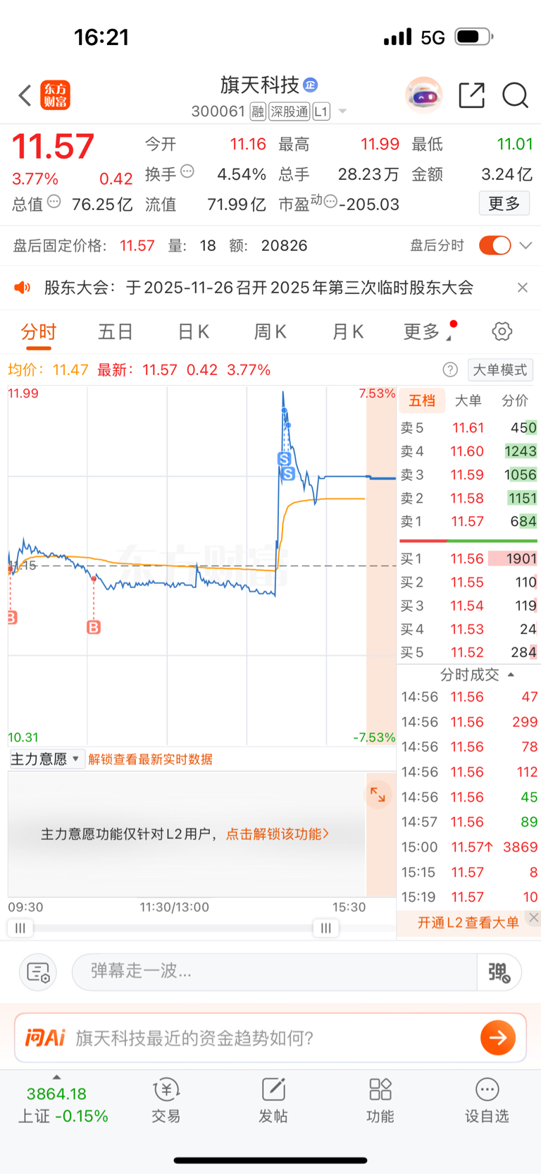 $旗天科技(SZ300061)$
