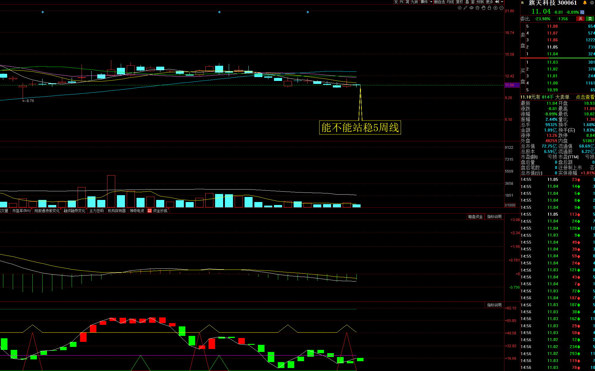 旗天上周五多空交战5周均线较为激烈,多方微微占优。下周是关键,会否与上证背道而驰?
