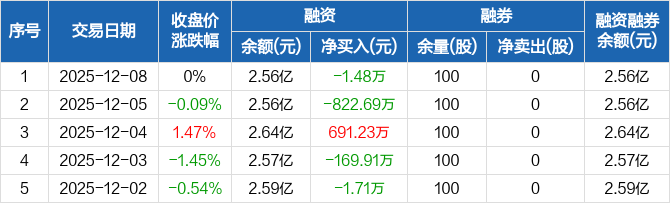 旗天科技:融资净偿还1.48万元,融资余额2.56亿元(12-08)