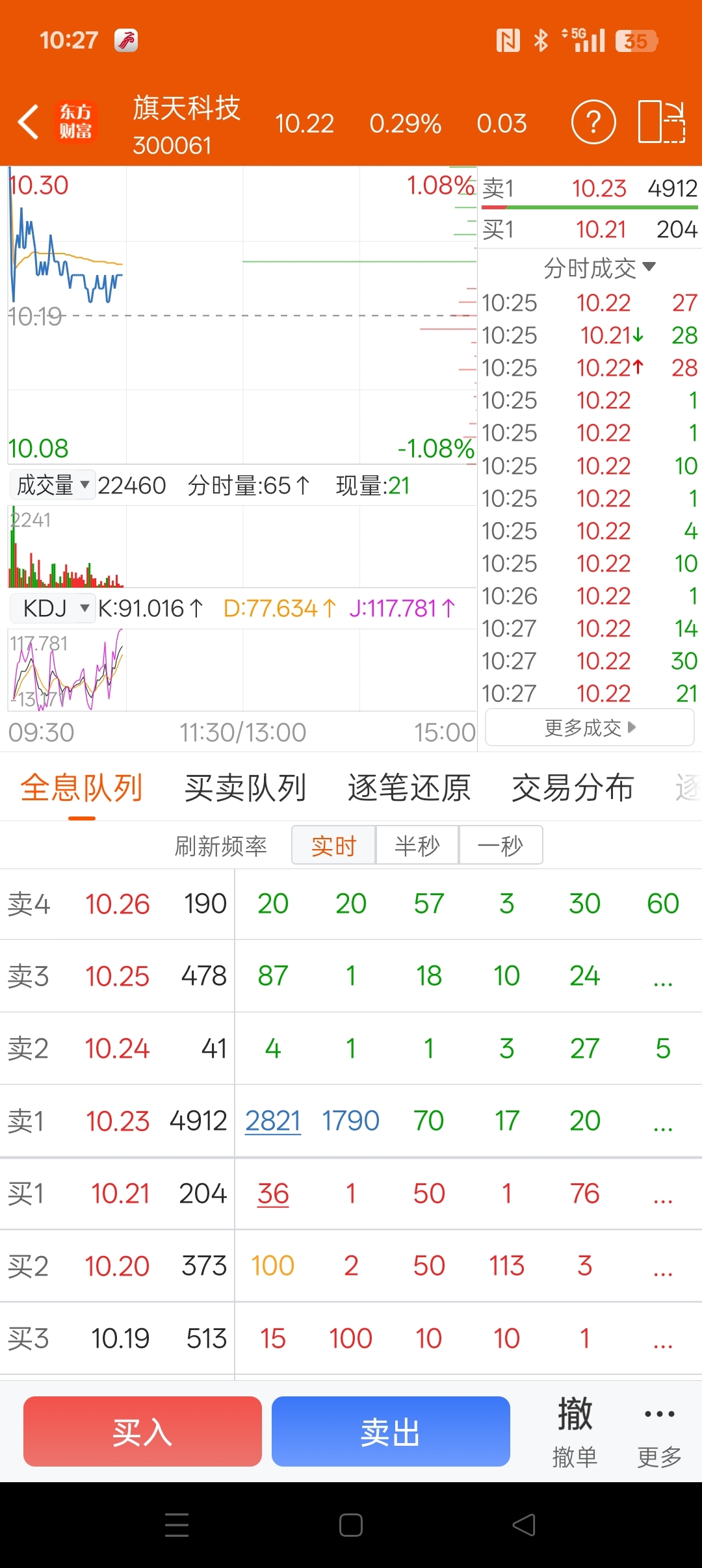 $旗天科技(SZ300061)$ 奇观1分钟成交1手。