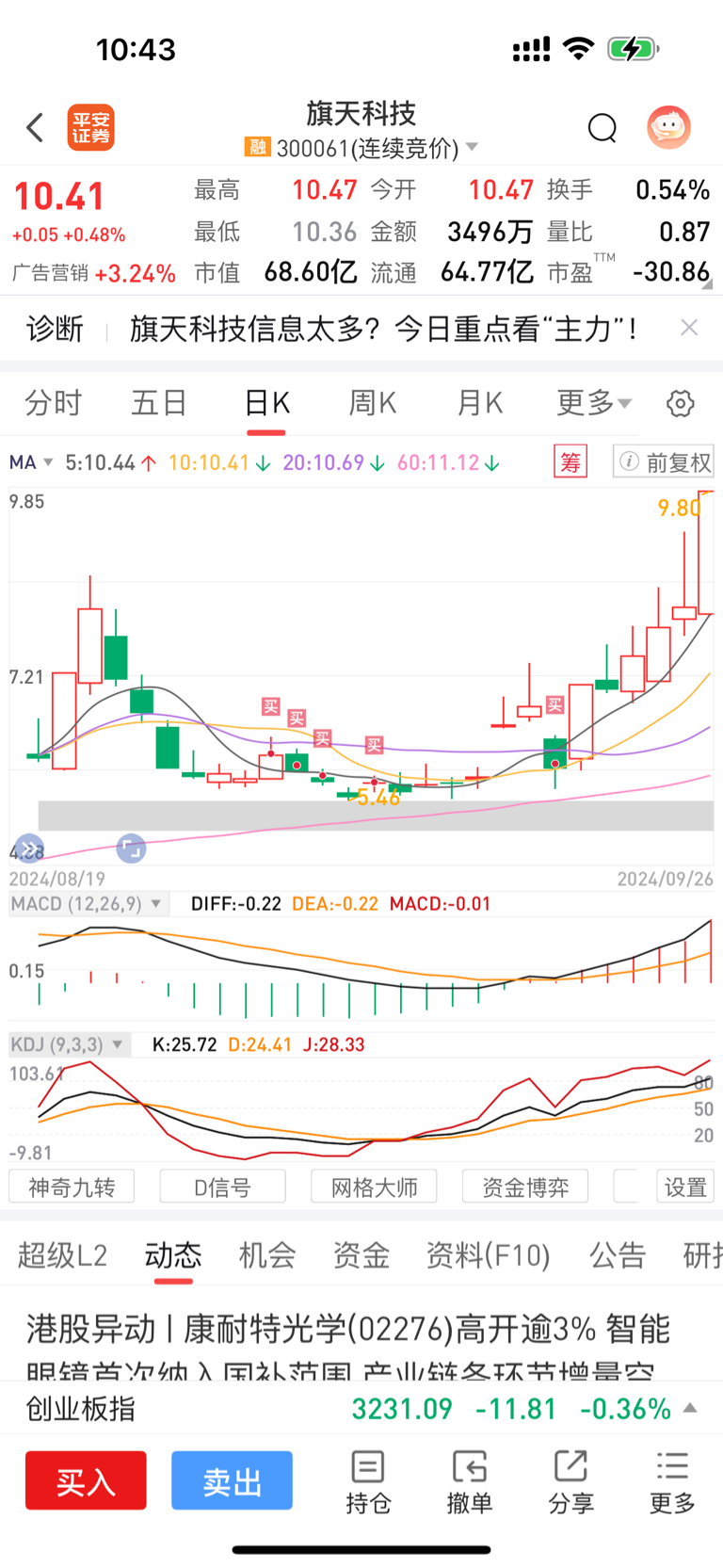 $旗天科技(SZ300061)$ 躺着不动随波逐流