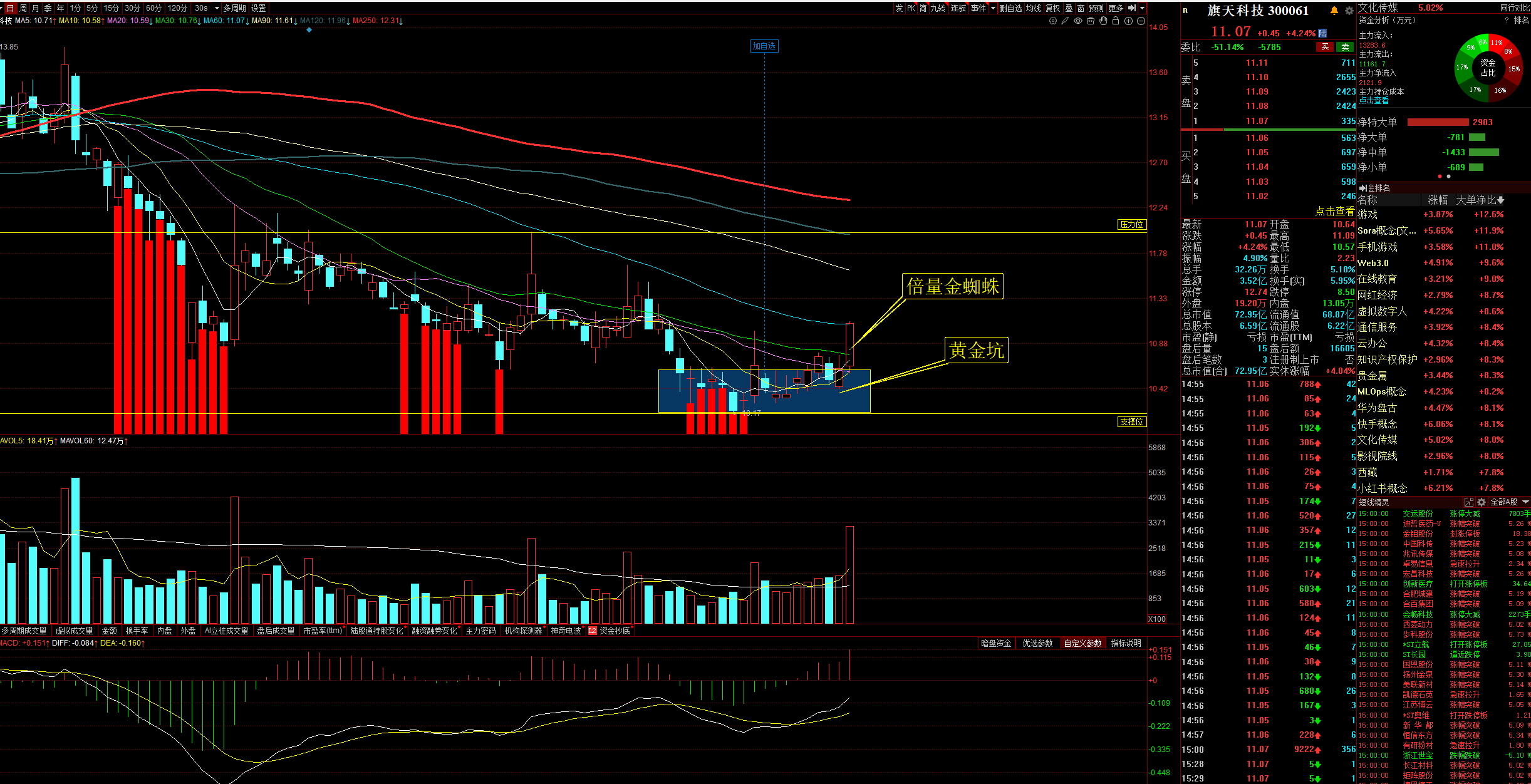 脱离10.61之下的黄金坑,也是未来一定时间内(中线)的阶段底。