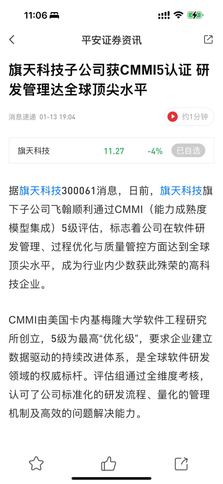 $旗天科技(SZ300061)$ 公司不公告、明天起飞