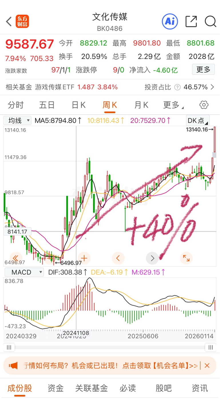 基本上板块涨幅都在40%附近,龙头个股涨幅都已翻倍。