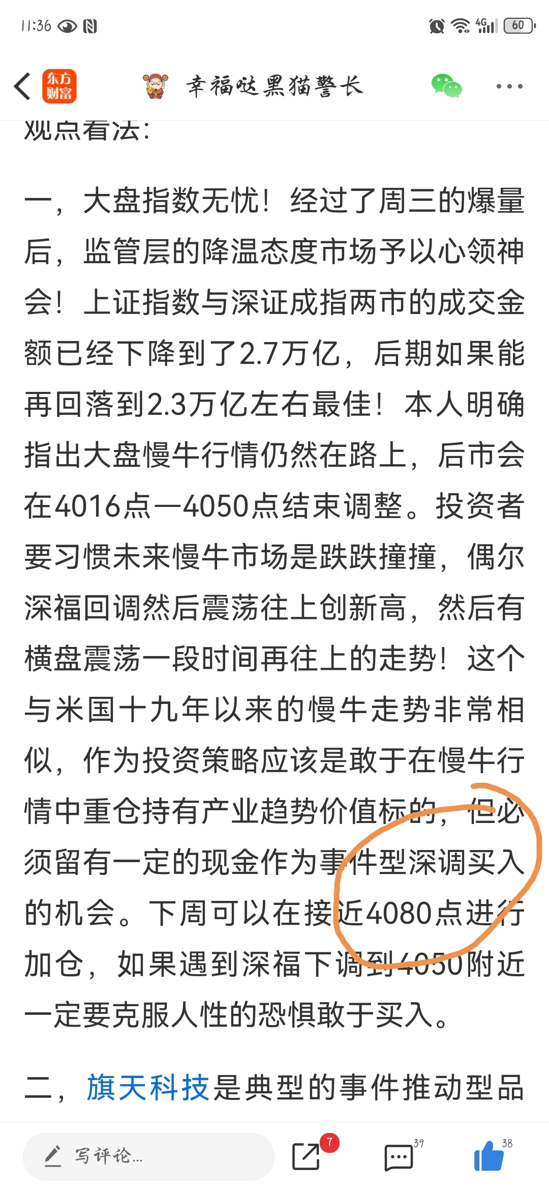 阐述观点前稍微为自己点个赞,在昨天的帖子里精准的提到了大盘指数的调整到位的点位是4080点,今天大盘指数下跌4080.29点就点到为止回升!
