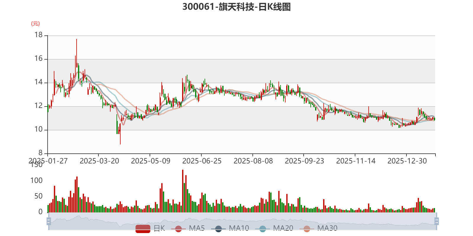 中证智能财讯旗天科技(300061)1月26日晚间披露2025年度业绩预告,预计2025年实现营业收入3.43亿元至4.77亿元;归母净利润亏损6000万元至9500万元,上年同期亏损2.14亿元;扣非净利润亏损6300万元至9800万元,上年同期亏损2.18亿元。以最新收盘价计算,市净率(LF)约13.63倍,市销率(TTM)约17.42倍。