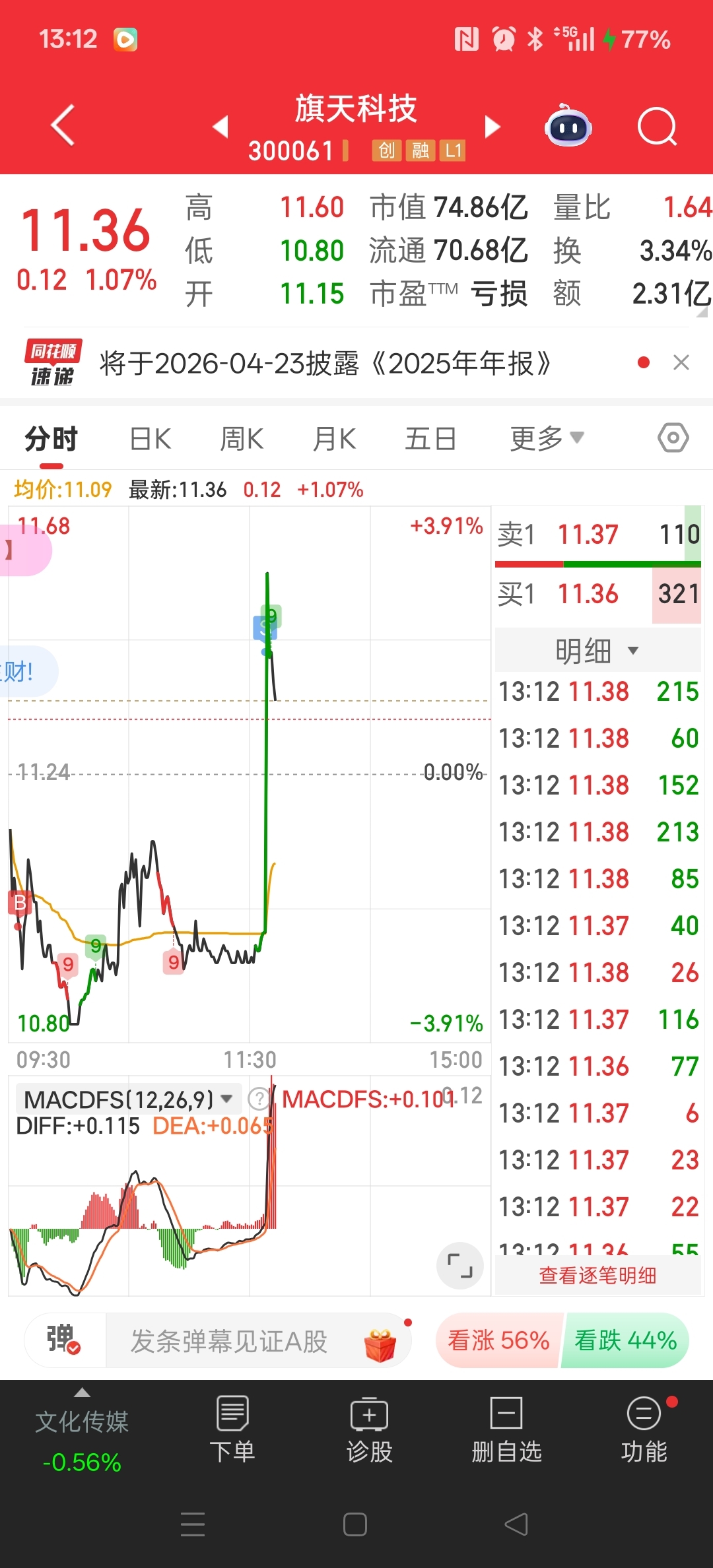 $旗天科技(SZ300061)$ 我被枸庄镇住了,走了,留下的发财