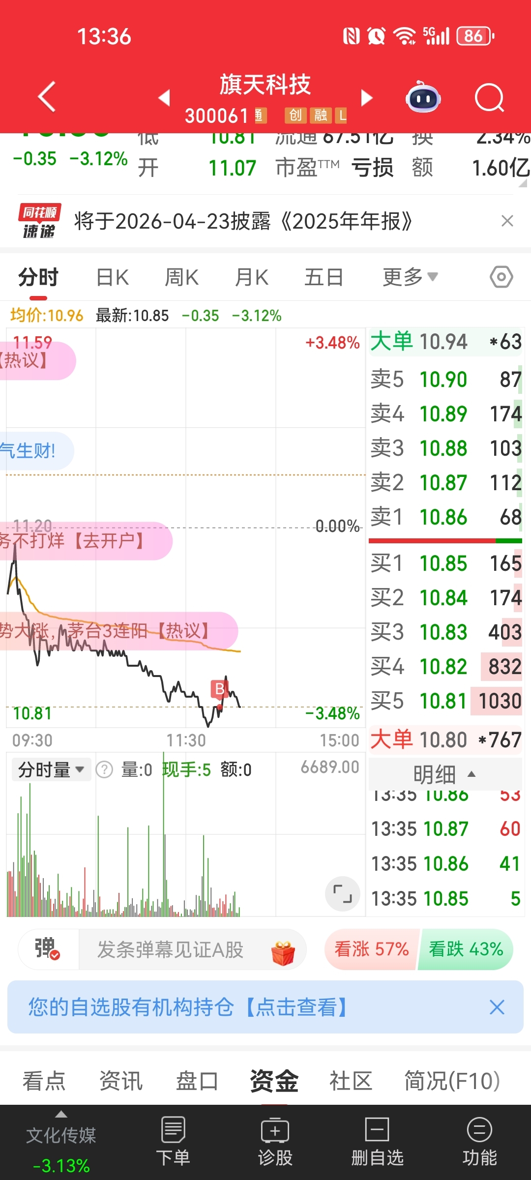 $旗天科技(SZ300061)$ 怪我咯,买了