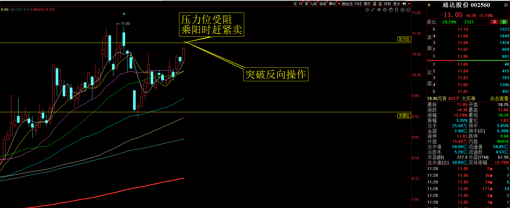 压力位受阻突破不了,或者盘中突破尾盘又收在下方当然卖了,然后观察一两天,如果卷土重来再携量突破,那么择机跟进。