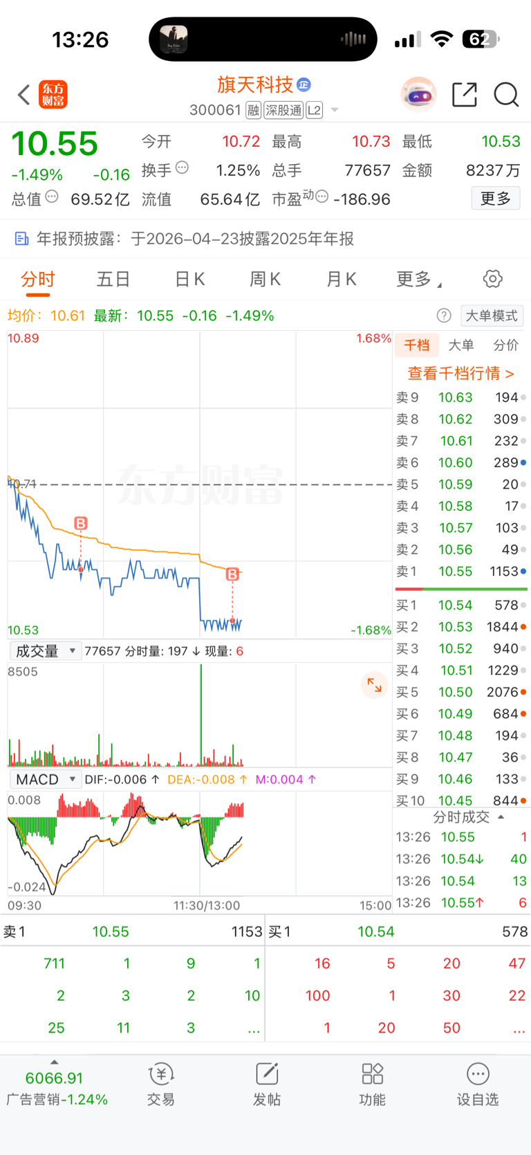 $旗天科技(SZ300061)$ 主力哥哥,小弟已躬身入局