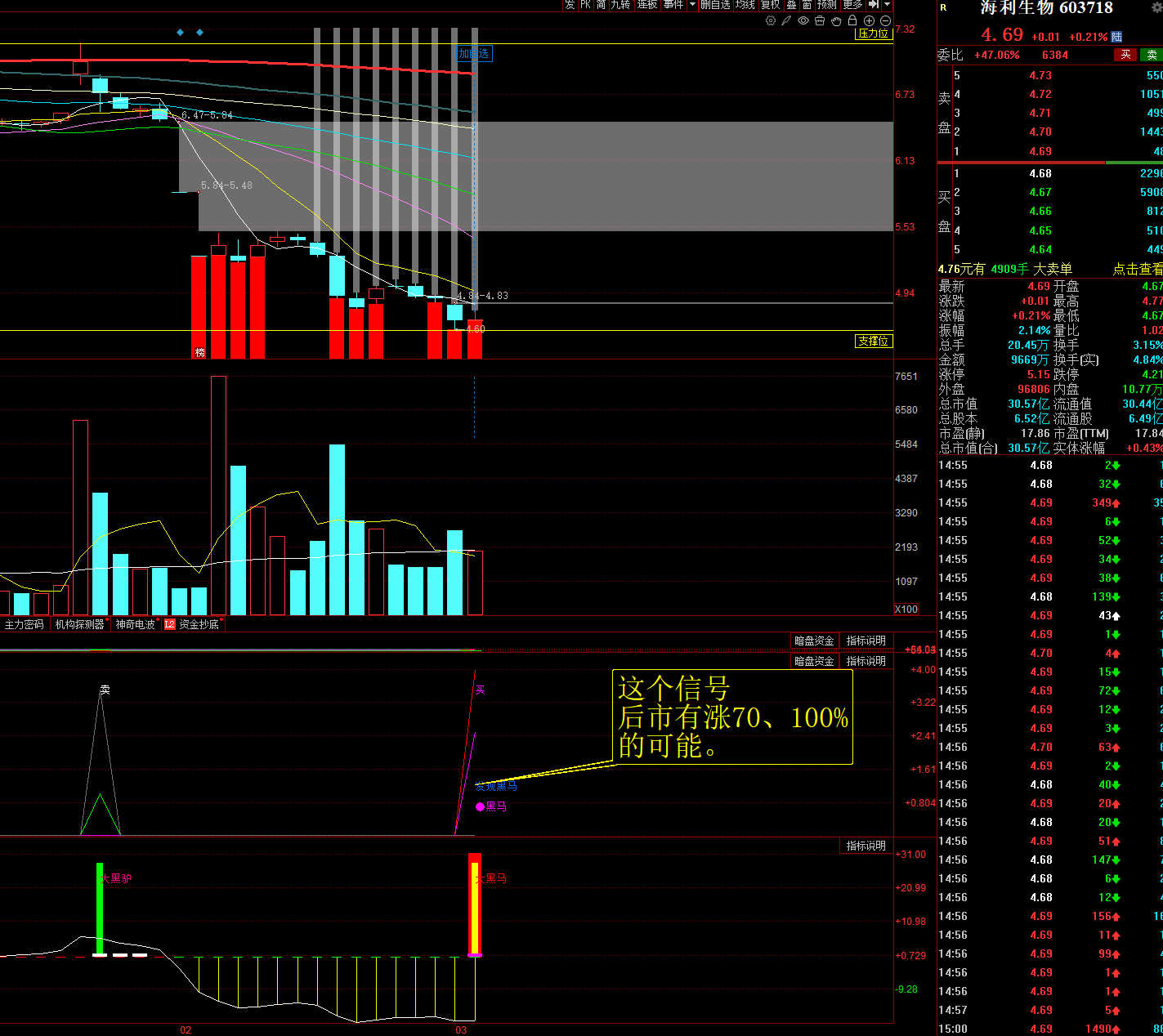 明后两天海利生物不破4.60可入,通达股份等9.62可入。