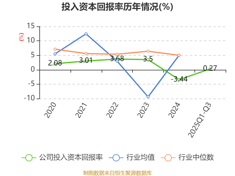 盈利能力方面, 2025年前三季度公司加权平均净资产收益率为0.41%,同比上升0.72个百分点。公司2025年前三季度投入资本回报率为0.27%,较上年同期下降0.26个百分点。