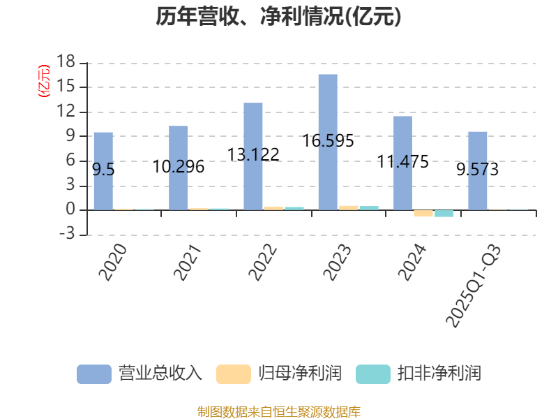中证智能财讯中能电气(300062)10月23日披露2025年第三季度报告。前三季度公司实现营业总收入9.57亿元,同比下降4.30%;归母净利润511.24万元,同比扭亏;扣非净利润638.4万元,同比扭亏;经营活动产生的现金流量净额为-1.56亿元,上年同期为-1.3亿元;报告期内,中能电气基本每股收益为0.01元,加权平均净资产收益率为0.41%。