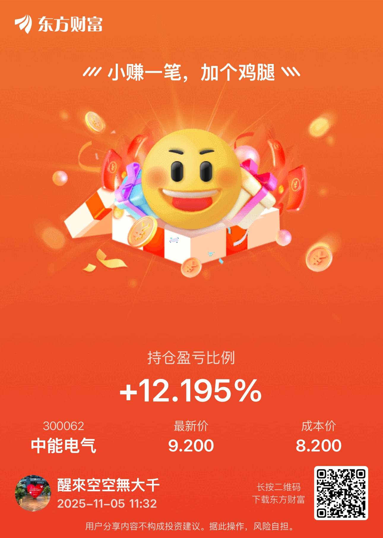 温馨提示: 1.根据《证券法》规定,禁止编造、传播虚假信息或者误导性信息,扰乱证券市场;2.用户在本社区发表的所有资料、言论等仅代表个人观点,与本网站立场无关,不对您构成任何投资建议。用户应基于自己的独立判断,自行决定证券投资并承担相应风险。《东方财富社区管理规定》