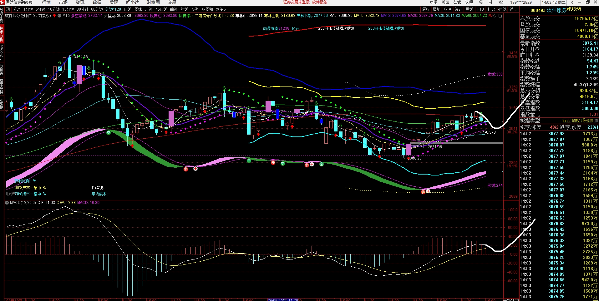 软件服务指数,明天如果再回踩一下布林线中轨,那是最佳的上车机会,关注周线即将反转的软件,这样的标的随时都有可能迎来大涨,大家去看一下软件服务指数,今天指数跌了百分之1.6,盘中跌了2%,而软件服务指数里面相关的个股跌幅比较小,大多数都是跌幅在0%点几,大家要知道,指数在大跌的过程当中,这个板块里面的一些票不跌,这就是最好的走势,这种不跌的个股指数一旦企稳,它就会起飞,特别是这些周线和月线共振的个股,一定要打起12分精神,具体有哪些票是周线反转或者是周线和月线反转,这个在直播间都已经讲了