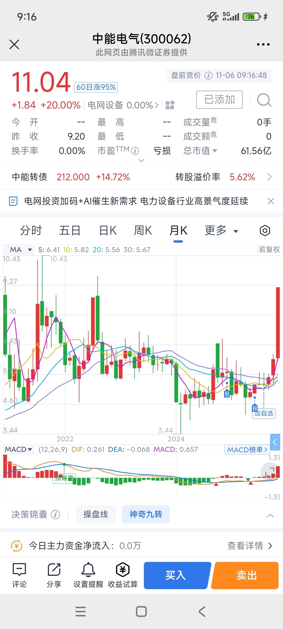 $中能电气(SZ300062)$ 不错已经挣16万了