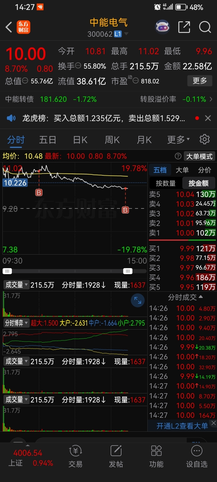 $中能电气(SZ300062)$ 如果在收盘前换手到了55还没封涨停的话,我就梭哈进去,不开玩笑